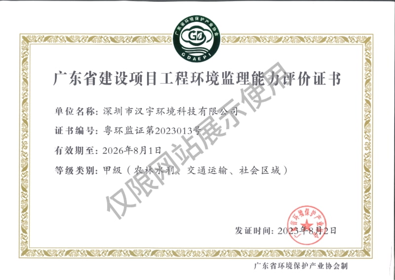 漢宇環(huán)境是國家高新技術(shù)企業(yè)、廣東省環(huán)保骨干企業(yè)、深圳市專精特新中小企業(yè),秉承“開拓、創(chuàng)新、誠信、高效”經(jīng)營理念,致力發(fā)展成為行業(yè)領(lǐng)先的綜合性生態(tài)環(huán)境技術(shù)服務(wù)企業(yè),竭誠為廣大客戶提供全方位全過程的技術(shù)服務(wù)。